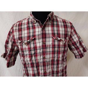 Brand & Description: Carhartt Relaxed Fit Mens Medium Reg Red Plaid Short Sleeve Button Work Shirt