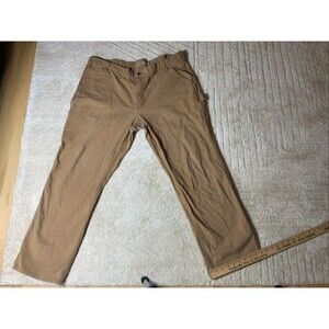 The Carhartt Relaxed Fit Men's Pants in size 42/32 are versatile and comfortable pants suitable for both casual and workwear occasions. Made with a blend of spandex and cotton, these beige pants feature a relaxed fit for added comfort. The pants have a zip closure, are machine washable, and come with convenient pockets for added functionality. Perfect for everyday wear or working in various settings, these Carhartt pants offer quality and style with the trusted Carhartt brand.