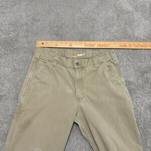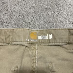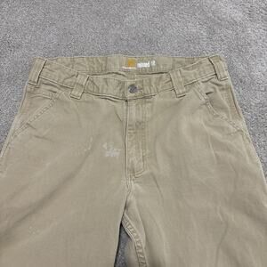Carhartt Relaxed Fit Pants Khaki Canvas Workwear 34x32 Distressed
