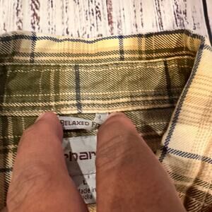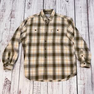 Carhartt Relaxed Fit Plaid Flannel Shirt Men’s L Green/Tan Cotton
