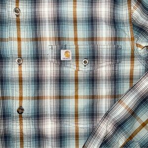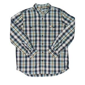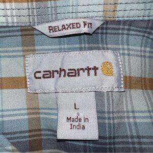 Carhartt Relaxed Fit long sleeve button down pockets pre owned great condition no rips holes stains se photos for measurements