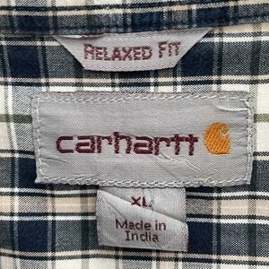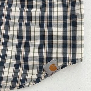 Carhartt Relaxed Fit Short Sleeve Blue Plaid Cotton Button Down Shirt Mens XL