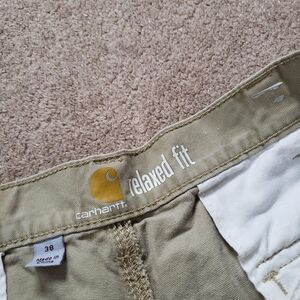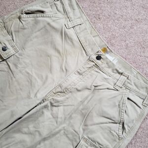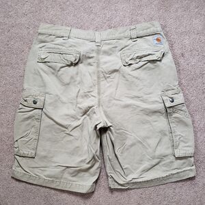 Carhartt Relaxed Fit Size 38 Mens Tan 100% Cotton Canvas Cargo Shorts Work. Condition is Pre-owned - Excellent. Shipped with USPS Ground Advantage.