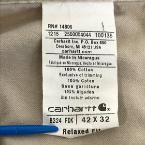 Carhartt Relaxed Fit Utility Work Pant Men's Size 42x32 Khaki 100% Cotton Twill