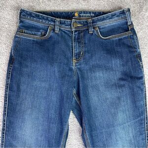 Carhartt Relaxed Jeans Women’s 8 Blue Straight Mid-Rise Dark Denim Stretch
