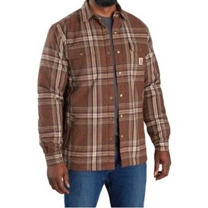 Carhartt Relaxed fit Brown Plaid Shirt Jacket Shacket Sherpa lined Large Tall