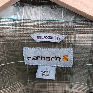 Carhartt Relaxed fit short sleeved button up shirt brown plaid workwear L men's