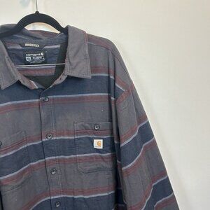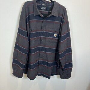 Carhartt Rugged Flex Flannel Fleece Lined Shirt Shacket Striped 104913 Size 4XL