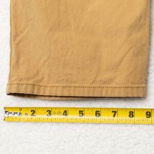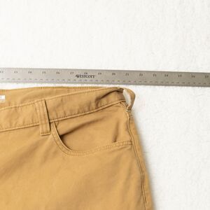 These are tan, canvas, sturdy, work pants. They are mostly made of cotton, but have a bit of spandex for easier movability. As can be seen from the provided images, the pants are in in good pre-owned condition with minimal signs of wear. The inner tags are still don't show much, if any signs of wear from being washed. No holes or stains present.