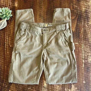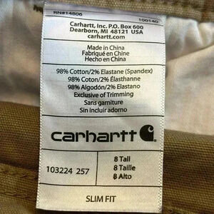 From Carhartt website: Good work pants offer un-restricted movement, and these women′s midweight pants do just that. The cotton canvas construction has stretch for a full range of motion, while the waist is cut to stay put as you reach or bend down.