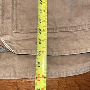 The Carhartt Sherpa Fleece Lined Brown Work Chore Coat Jacket in size XXL is a durable and functional outerwear piece designed for men. Made with a cotton canvas outer shell and lined with polyester fleece, this jacket is perfect for casual wear or workwear in the winter and fall seasons. It features a full zip closure, zipped pockets, a hood, and insulation for added warmth. The brown color and solid pattern give it a classic and versatile look, while the regular fit ensures comfort and mobility. Machine washable for easy care, this Carhartt jacket is a reliable choice for outdoor activities and chores.