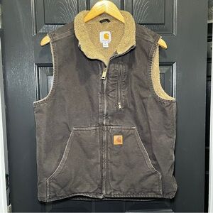 Carhartt Sherpa Lined Duck Canvas Vest Mens Sz Med Dark Brown Workwear V33 DKB
