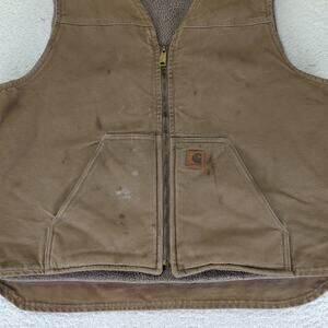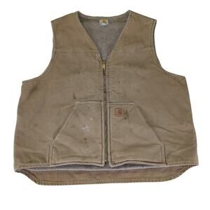 Carhartt Sherpa Lined Sandstone Rugged Canvas Vest V26 FRB 100% Cotton Men's Size 2XL Tall Frontier Brown