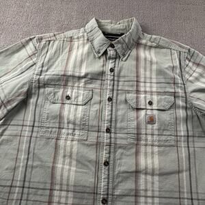 Carhartt Shirt Adult Large Green Button Up Short Sleeve Workwear Casual Men's