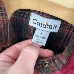 Carhartt Shirt Barn Jacket Mens L S96DKR Shacket Snap Plaid-Lined Red Canvas