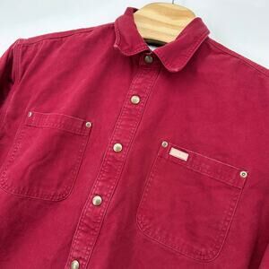 Carhartt Shirt Barn Jacket Mens L Large S96DKR Shacket Snap Plaid-Lined Red Canvas CRI chore coat jacket Dark Red Crimson