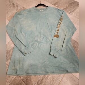 Carhartt Shirt Extra Large Tall XLT Loose Blue Distressed Workwear Barn Chore