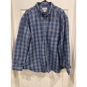 Carhartt Shirt Men Size 2XL Blue 100% Cotton Long Sleeve Gingham Pattern Outdoor