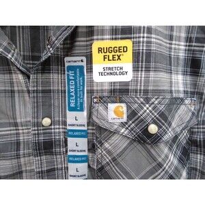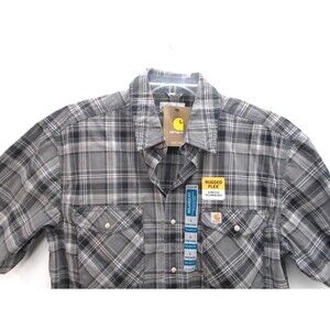 Carhartt Shirt Men Size L Rugged Flex Relaxed Fit Pearl Snap Light Weight Gray
