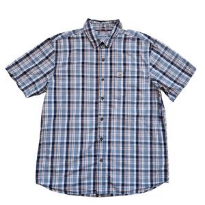 Carhartt Shirt Mens Large Blue Plaid Button Up Short Sleeve Cotton Relaxed Fit