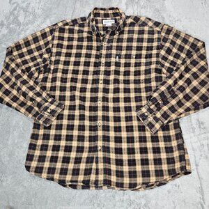 Carhartt Shirt Mens Large Navy Tan Gold Plaid Flannel Button Up Workwear