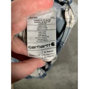 Carhartt Shirt Men's XL Blue Plaid Relaxed Fit Short Sleeve Button Up Collar