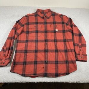 Carhartt Shirt Mens XL Blue Red Loose Fit Heavyweight Flannel Plaid (Lot of 2)