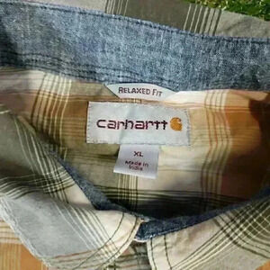 Carhartt Shirt Men's XL Orange Plaid Relaxed Fit Button Down Pearl Snap