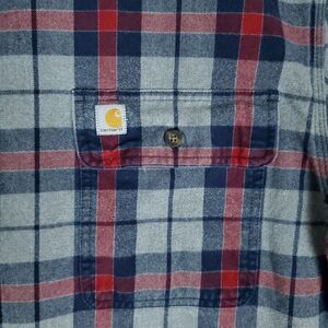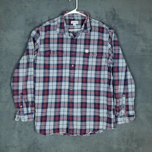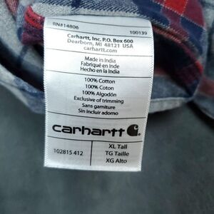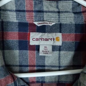 Carhartt Shirt Mens XL Tall Red Blue Gray Plaid Flannel Button Up Original Fit