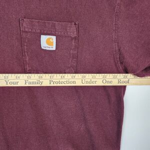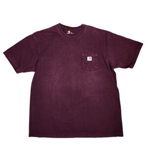 Carhartt Tee Shirt Mens Size XL ( Extra Large ) Burgundy Short Sleeve One Front Pocket Brand Patch Logo Utility Chore Work Wear Construction Rugged Laborer Style