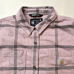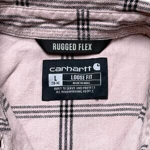 Carhartt Shirt Women's Large Pink Black Plaid Rugged Flex Loose Fit