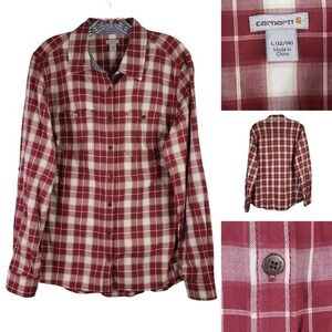 Carhartt Shirt Women's Large Red Plaid Long Sleeve Button Up Cotton Rodeo