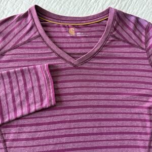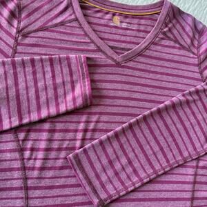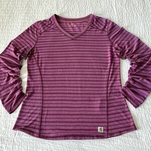 Carhartt Shirt Women’s M 8/10 Purple Striped Long Sleeve V-Neck Basic Tee