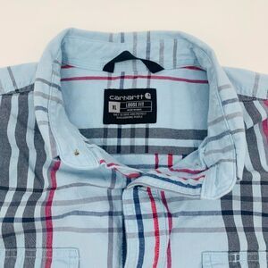 Carhartt Shirt Men's Size XL Plaid Button-Down Loose Fit Short Sleeve Blue