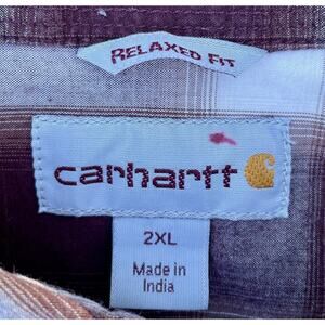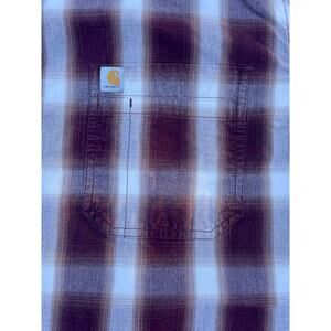 Carhartt Short Sleeve Button-Down Work Shirt Plaid Burgundy Sz. XXL