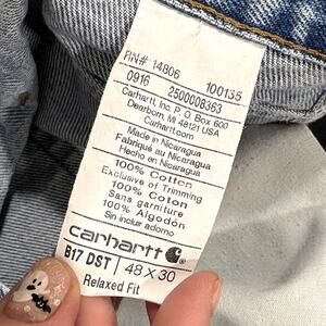 Carhartt Size 48 x 30 Jeans Relaxed Fit B17 DST Straight Leg Broken In