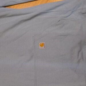 Sky blue quarter-zip sweatshirt with front pocket. Features Carhartt logo patch.