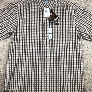 Carhartt Small Regular Plaid Beige Short Sleeve Work Shirt NEW Cotton