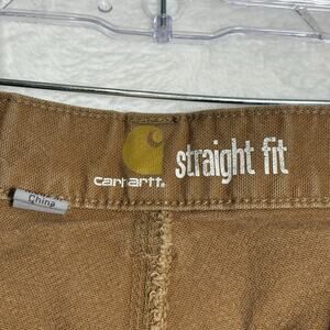 The Carhartt Straight Fit Double Knee Dungaree Pants for men in size 38x32 are a durable and comfortable option for those working in a carpentry setting or other heavy-duty jobs. Made with a blend of spandex and cotton fabric, these brown pants feature a double knee design, hammer loop, and plenty of reinforced pockets for convenience. With a straight leg style and easy care instructions, these Carhartt pants offer both style and functionality for tough work environments.