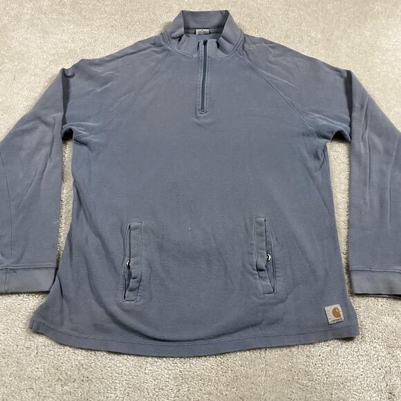 Carhartt Sweater Mens Large Blue Quarter Zip Waffle Knit Pullover Work Pocket