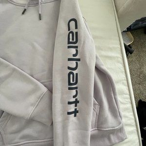 Light purple Carhartt sweatshirt, size medium (8-10). Worn a couple of times, small stain on left arm sleeve.