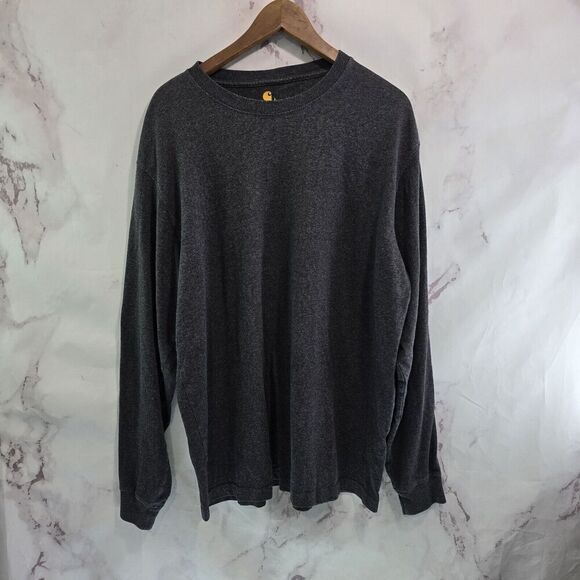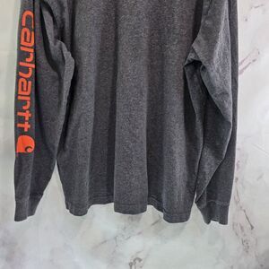 Carhartt T Shirt Mens Large Dark Grey Orange Original Fit Long Sleeve Spellout