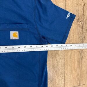 Features: Blue color, Chest pocket with Carhartt logo, Short sleeve, Crew neck