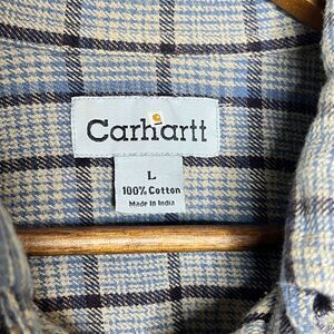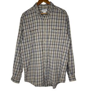 Carhartt Tan Blue Plaid Long Sleeve Button Up Shirt Size Large Men’s