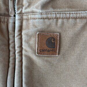 Durable Carhartt vest with front pockets and zip closure. Ideal for workwear.
