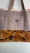 Upcycled taupe Carhartt tote with a vintage floral navy and gold towel. Durable fabric with two outside pockets. Perfect for everyday use. Handmade in Alaska using vintage materials.