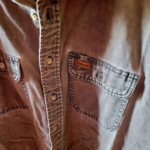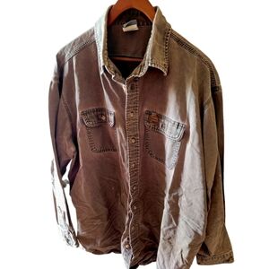 Carhartt Taupe Brown Button Front Work Shirt Distressed Used Condition 2XL Tall