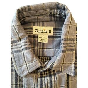 Carhartt Thick Cotton Blue Plaid Long Sleeve, Collared Shirt, Size Lg.
