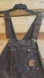 Durable brown Carhart overalls with adjustable seams, hammer straps, strong stitched. Reinforced back loop, back and front pockets, chest pocket, double enforced knees. 100% cotton canvas. Clean.