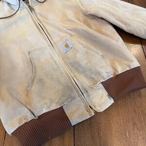 Carhartt Thrashed Vtg Quilted Flannel Workwear Jacket Lrg J04 Brown Union Made